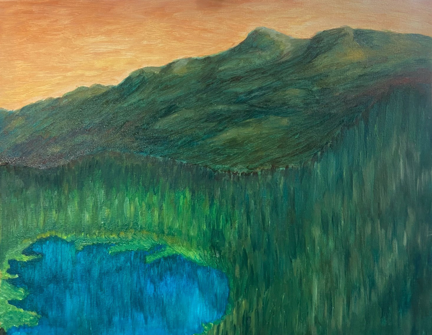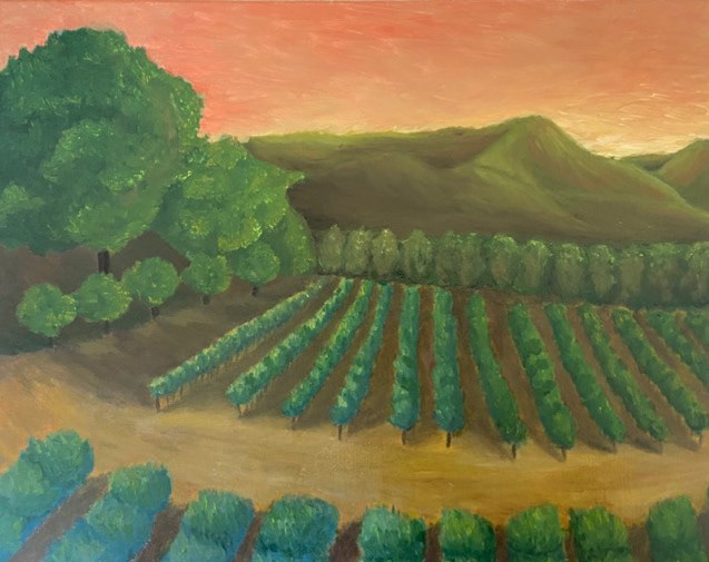 "The Napa Valley", "The Cherry Valley" and "The Mendocino National Forest" paintings are about climate change that were affected by wildfire in 2020. These three paintings are intended to show how calm and peace the places are before the wildfire happened.